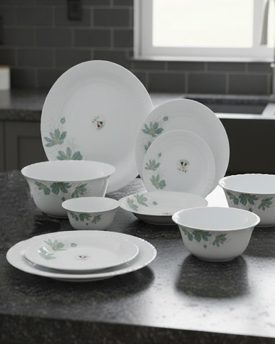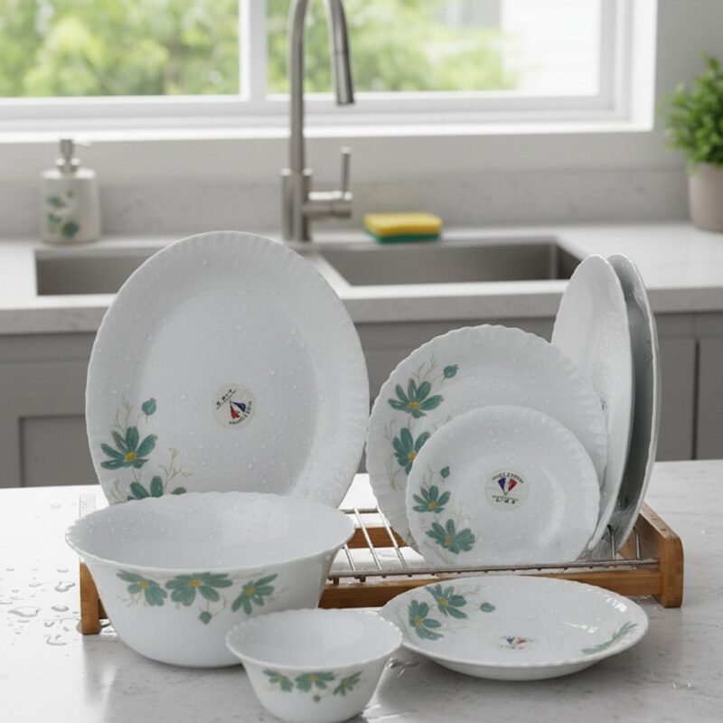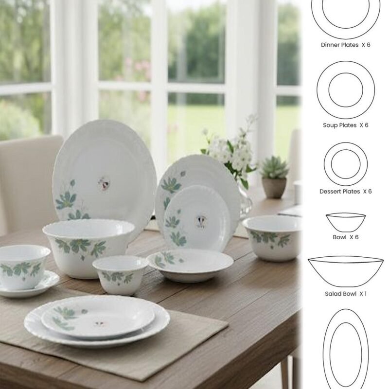 26-Piece Floral White Dinnerware Set – Elegant Opal Tableware for 6 Persons | Durable & Stylish Dining Set CK