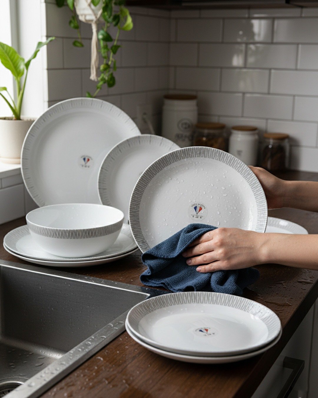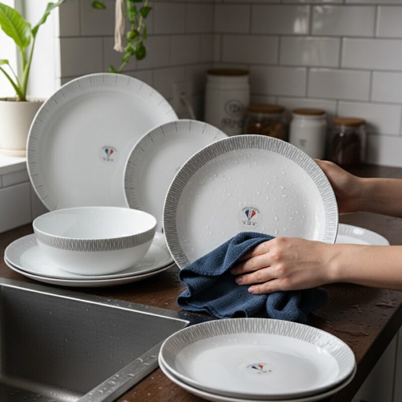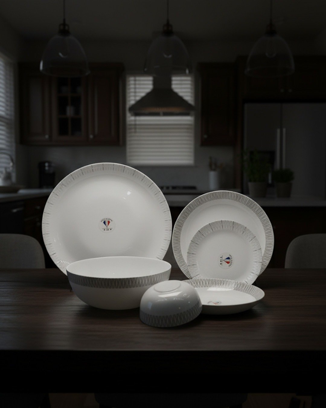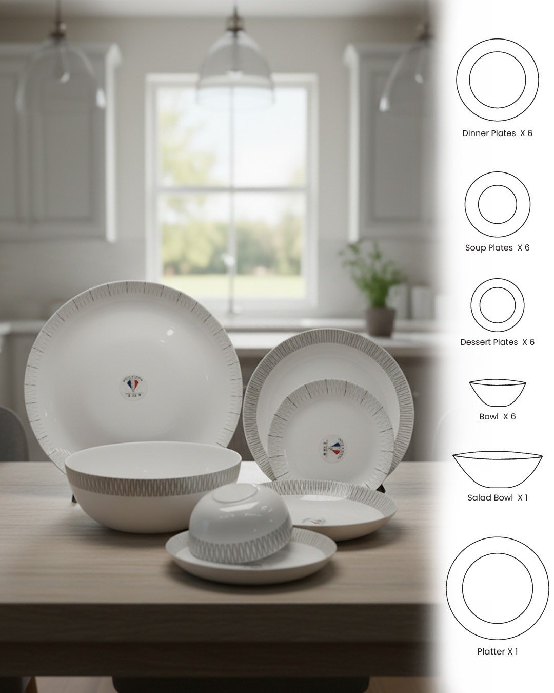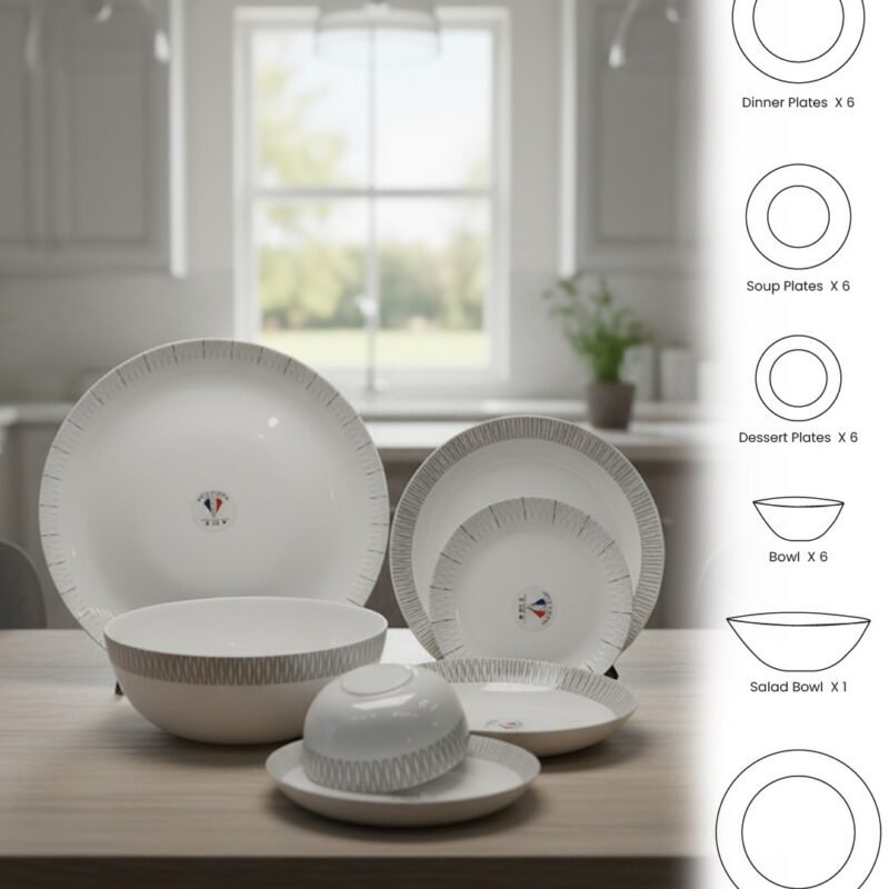 26-Piece Opalware Dinner Set with Minimalist Grey Line Design – Elegant Tableware for 6 | Microwave & Dishwasher Safe CK