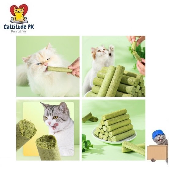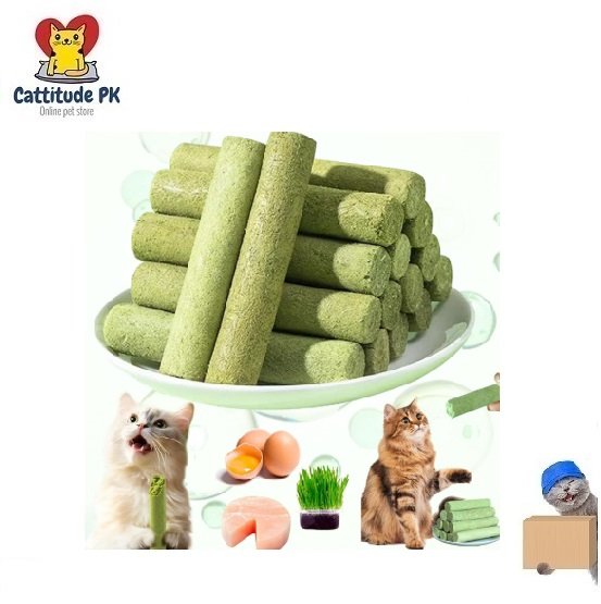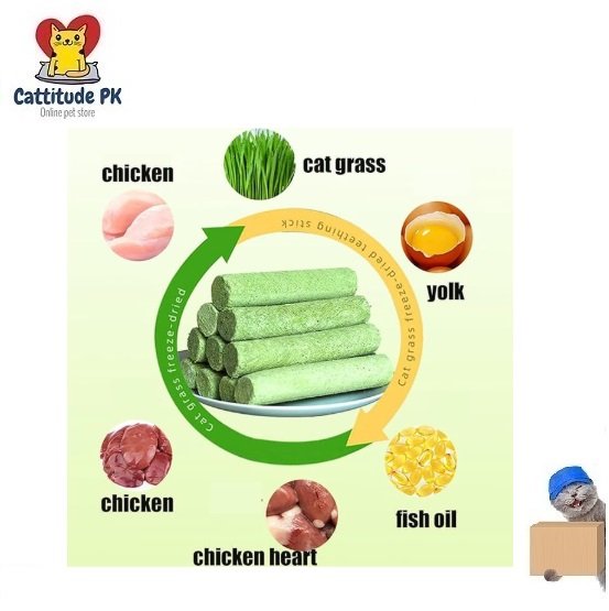 Keep your cat’s teeth clean and healthy with the Cat Grass Teething Sticks – Chicken & Grass Blend (30g, 6Pcs Pack). These natural dental treats combine the freshness of cat grass with the irresistible taste of chicken, creating a tasty, functional chew that supports oral hygiene and overall wellness.The Cat Grass Stick helps reduce plaque and tartar buildup while satisfying your cat’s natural chewing instincts. Rich in fiber and nutrients, it aids digestion and promotes a fresher breath. Made with safe, natural ingredients, these treats are perfect for daily snacking and dental care.