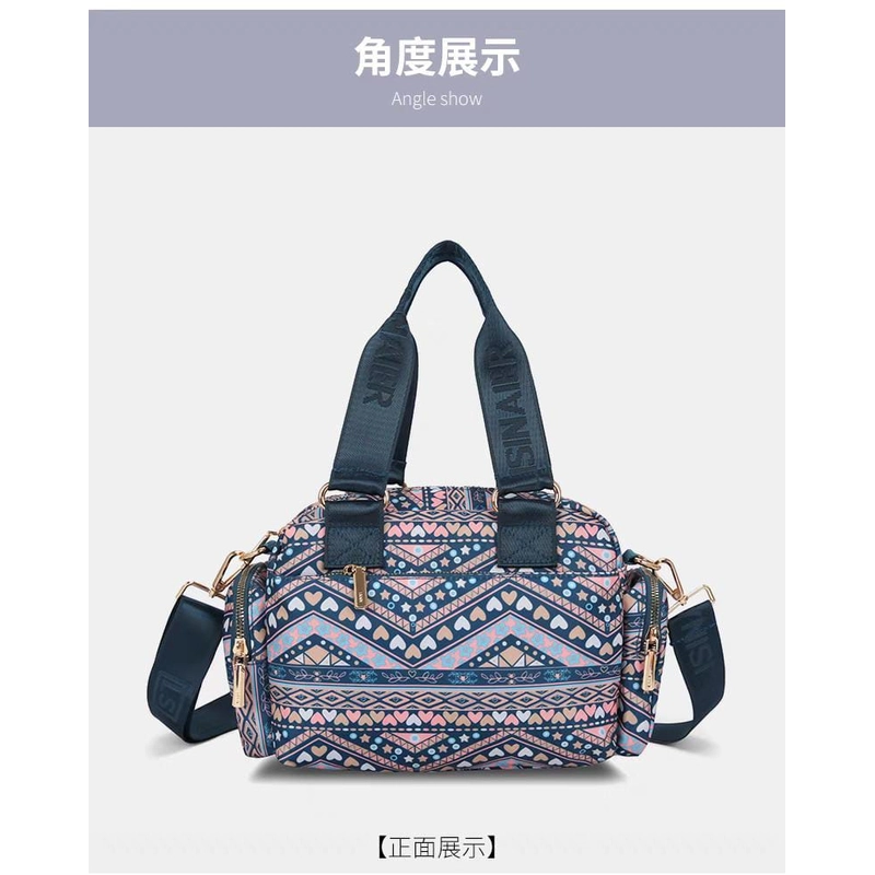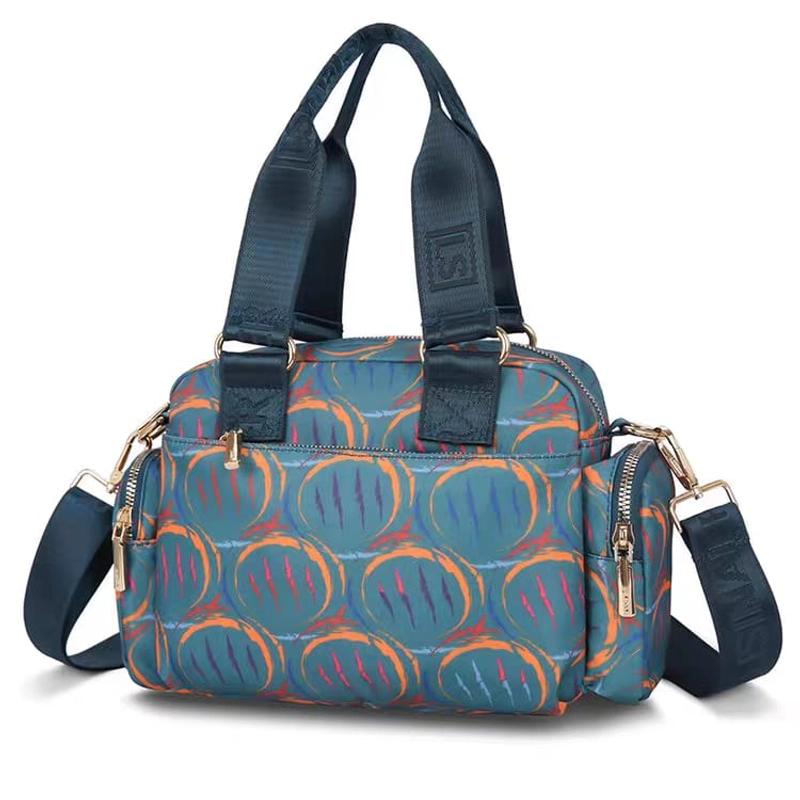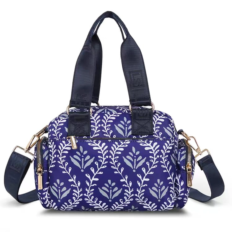 Floral Printed Handbag & Crossbody Bag for Women | Multi-Pocket Travel Shoulder Bag | Lightweight Nylon Purse