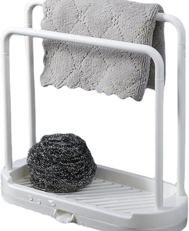 Kitchen Sponge Brush Holder with Detachable Towel Rag Hanger | Sink Organizer for Kitchen & Bathroom