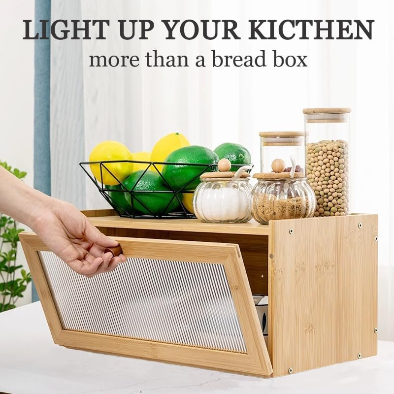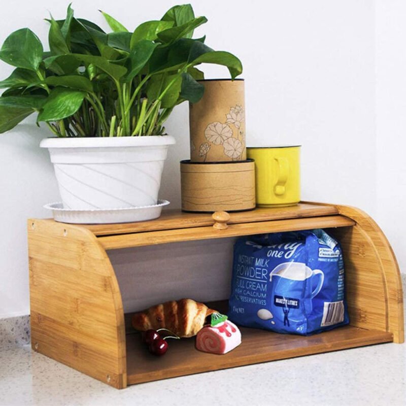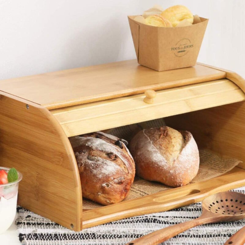 Keep your bread, buns, and pastries fresh and organized with this Large Wooden Bread Box. Crafted from premium bamboo wood, this roll-top bread storage box adds a natural and elegant touch to your kitchen countertop. The spacious interior fits multiple loaves, while the smooth sliding door keeps baked goods fresh and protected from moisture, dust, and pests. Perfect for modern and rustic kitchen décor alike