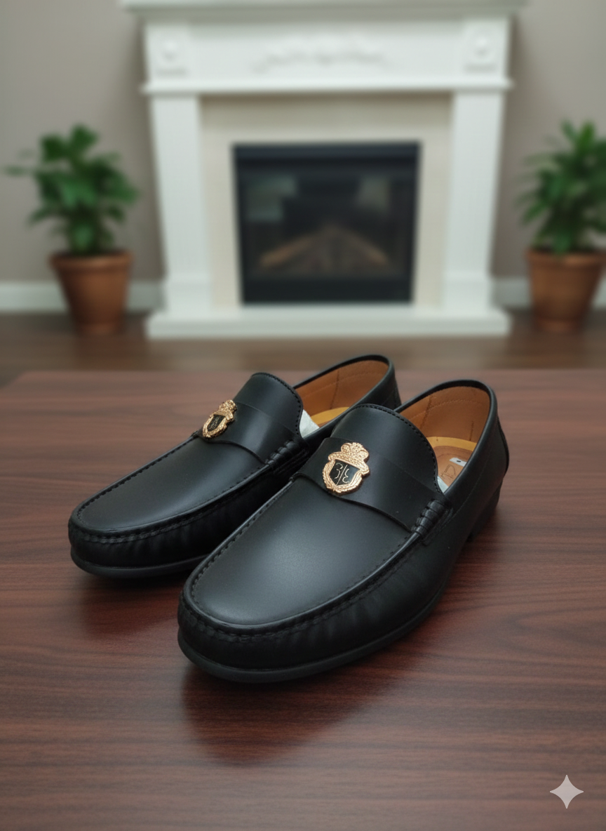 Upgrade your formal wardrobe with these Men’s Black Leather Loafers, designed with an elegant gold buckle detail for a refined look. Crafted from premium-quality leather, these loafers offer comfort, durability, and timeless style—perfect for office wear, business meetings, and formal occasions.
