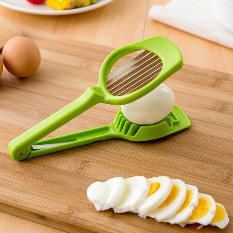 The Multipurpose Handheld Egg Slicer is a convenient kitchen tool designed to quickly slice boiled eggs into perfect even pieces. With its sharp stainless-steel wires and sturdy frame, it also works great for slicing mushrooms, strawberries, kiwis, bananas, and other soft foods. Easy to use, easy to clean, and perfect for making salads, sandwiches, and garnishing dishes.