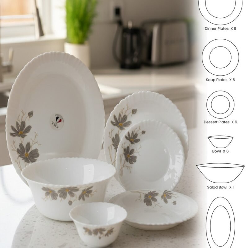 Dine in style with the Opalware Premium Floral Dinner Set – 26 Pieces. Made from high-quality opal glass, this lightweight yet durable dinnerware features a charming floral design that enhances every dining experience. Perfect for daily meals or special occasions, it’s microwave-safe, dishwasher-safe, and built for long-lasting elegance.