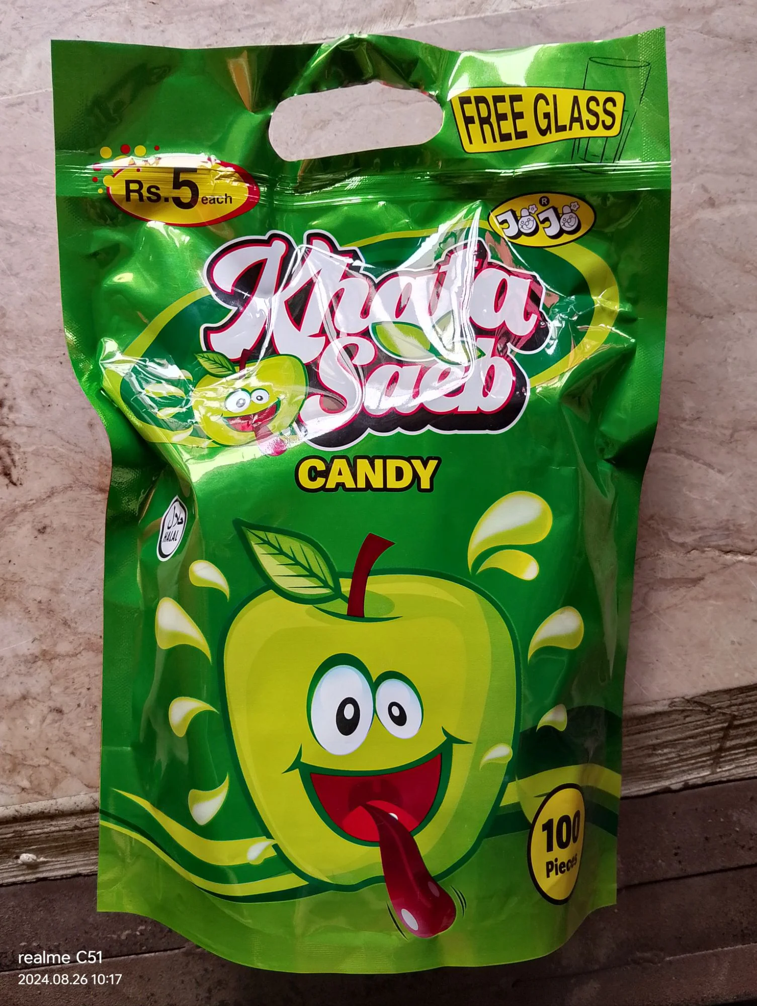 JoJo Khata Saeb candy, sour apple candy, large candy pack 100 pcs, yummy candy for kids, affordable candy pack, original JoJo candy, sweet & tangy candy