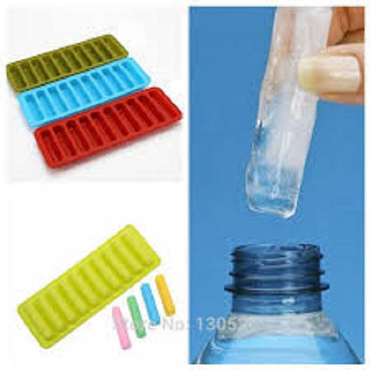 - Pack of 2 Silicone Trays – Each tray makes 10 round cylinder-shaped ice cubes.