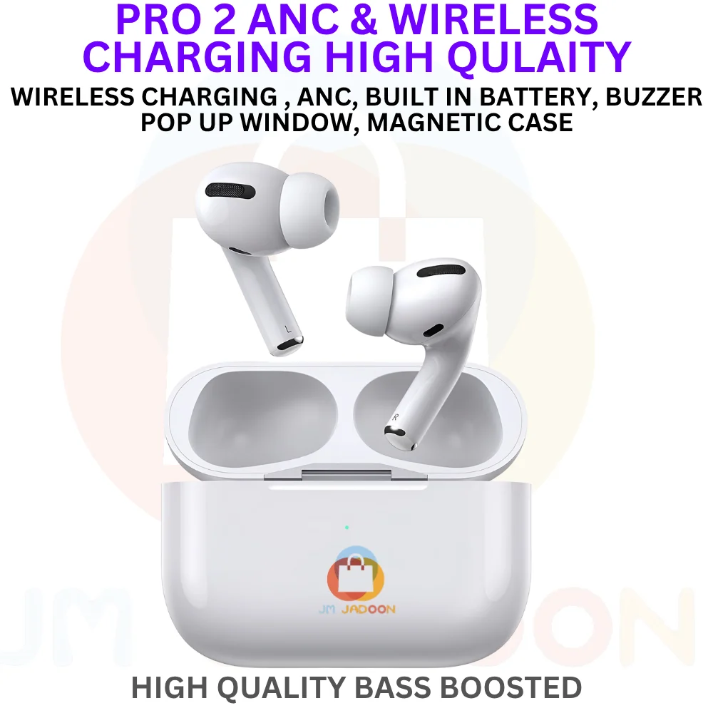 Enjoy crystal-clear sound and powerful bass with the AirPods Pro 2nd Generation. Featuring Active Noise Cancellation (ANC), wireless charging, Bluetooth 5.0, and a magnetic popup window, these premium TWS earbuds deliver immersive audio with comfort and style.