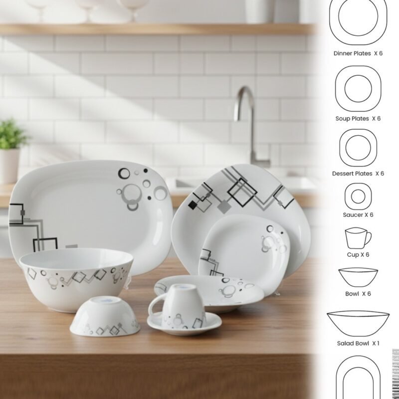 Upgrade your dining table with the Urban Geometric Opal Dinnerware Set. Featuring a sleek geometric pattern, this premium opal glass dinnerware combines modern design with durability. Lightweight, scratch-resistant, and easy to clean, it’s perfect for daily family meals, gatherings, and formal occasions