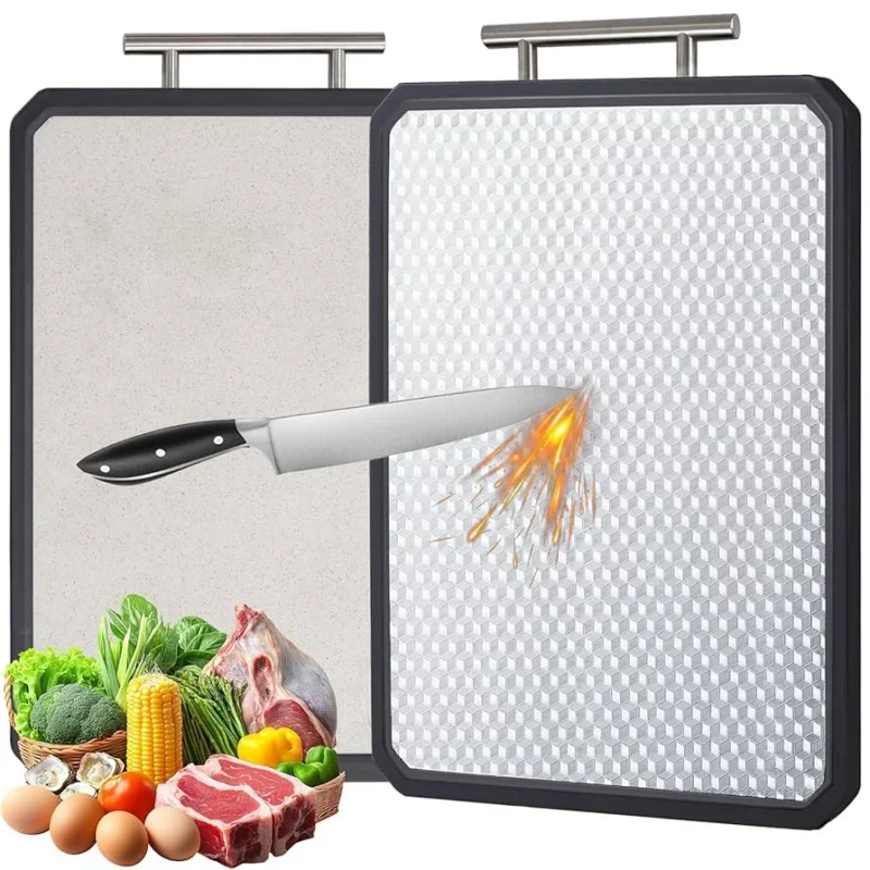 This Safe Kitchen Stainless Steel Cutting Board is designed for durability, hygiene, and everyday convenience. Featuring a large surface area and a strong stainless steel construction, it provides a sanitary, odor-resistant, and long-lasting workspace for all your food preparation needs. The double-sided design offers versatility, while the anti-slip edges ensure stability during chopping. Ideal for cutting meat, vegetables, fruits, and more, this board is perfect for home kitchens and professional use.