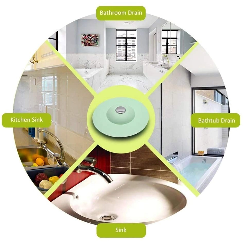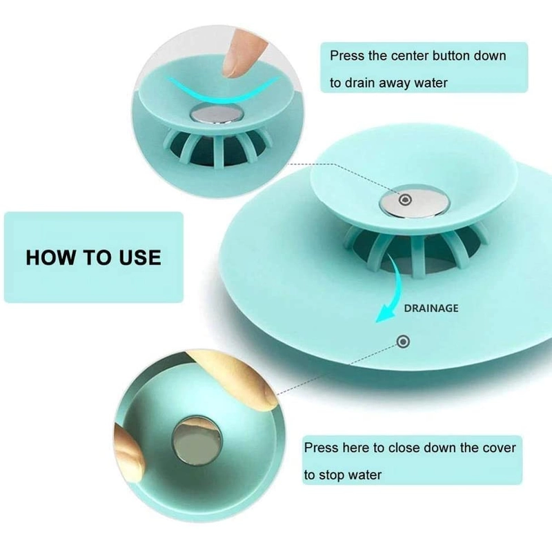 Flexible Silicone Drain Strainer & Hair Catcher that prevents clogging and odors. Suitable for kitchen sinks, showers, floor drains, and bathtubs.