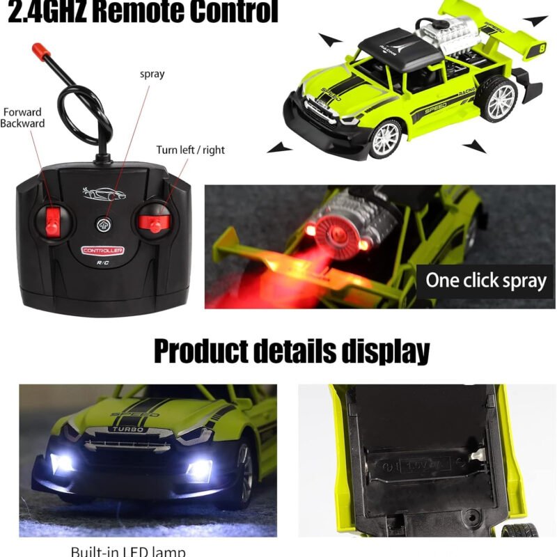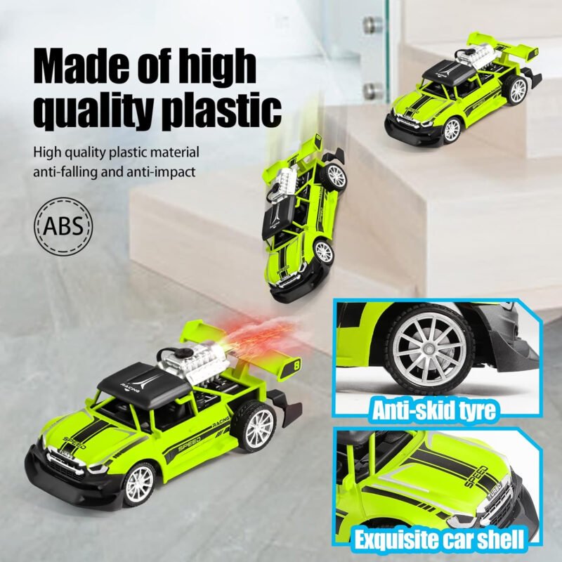 Take RC fun to the next level with the Speed Racing Spray Stunt Car! ????✨ Designed with a realistic light smoke spray exhaust effect, this 1:20 scale RC car delivers thrilling action for kids. Equipped with 2.4GHz remote control technology, it ensures long-range, interference-free driving and top-speed stunts. The car comes with a rechargeable battery and USB charging cable, making it eco-friendly and cost-saving. With its sleek design, durable build, and exciting features, it’s the perfect gift for birthdays, parties, or exam celebrations.