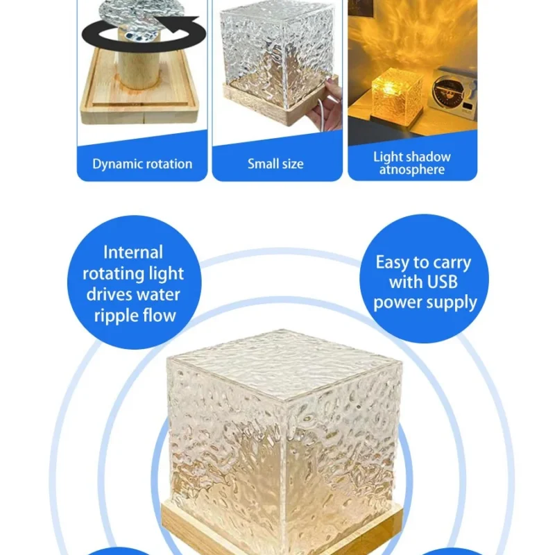 Transform your room with the USB Dynamic Water Ripple Galaxy Light. Featuring 16 vibrant colors, 3D crystal design, rotating ripple effect, and remote control, this projector creates a magical aurora, starry sky, and water wave ambiance. Perfect as a night light, Christmas light, event decoration, or room décor lamp for kids and adults.